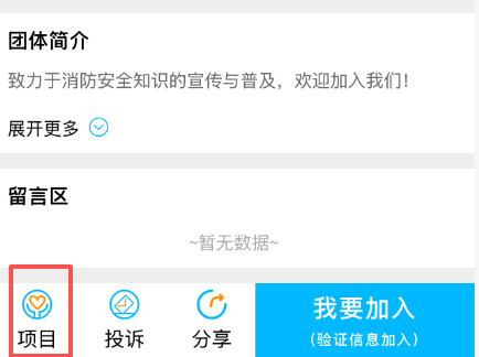 3、进入主页后点击【项目】,即可看到已发表的志愿者活动项目。