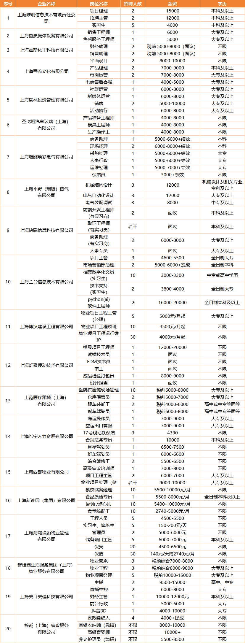 部分参会企业及岗位信息