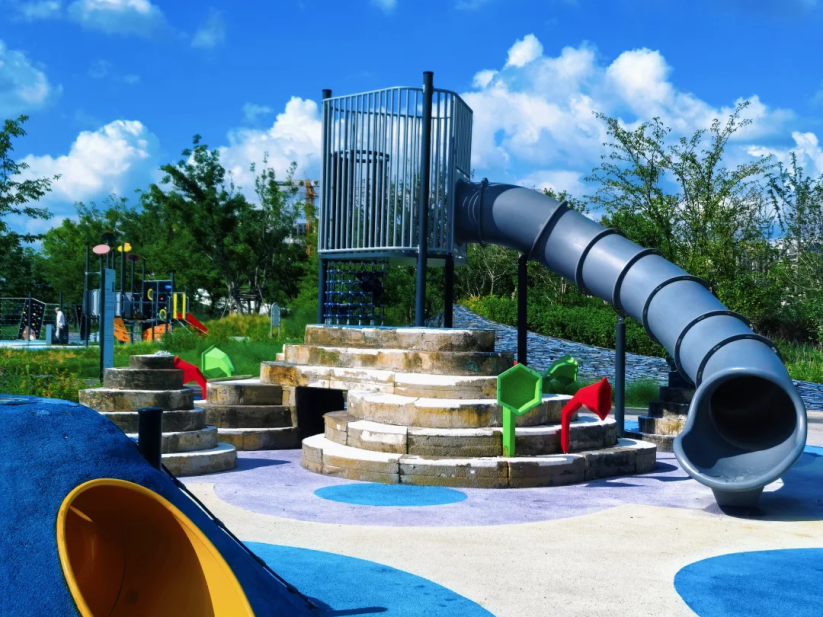 走进启动林公园内的“松果乐园”,仿佛踏入了一个由松果编织的“童话世界”。乐园以棕色的松果为设计主题,将自然元素巧妙地融入每一个游乐设施之中,松果形状的滑滑梯、松果造型的攀爬网,还有小巧可爱的松果小板凳,每一处细节都充满童趣,让孩子们在游玩的同时,真切地感受到大自然的魅力。