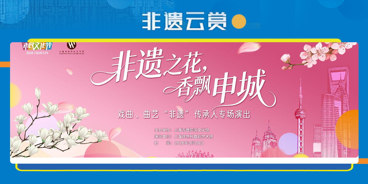 2026上海市民文化节普陀云上系列活动,让艺术触手可及,让美好随时发生。快邀请亲朋好友一起,在云端邂逅属于你的文化时光吧!