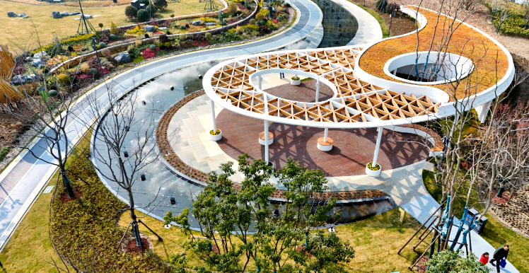 园内绿意盎然、步道蜿蜒,处处透着现代园林的精致与惬意,公园内设置了“潮玩汇”,是许多亲子家庭游玩的不二之选。