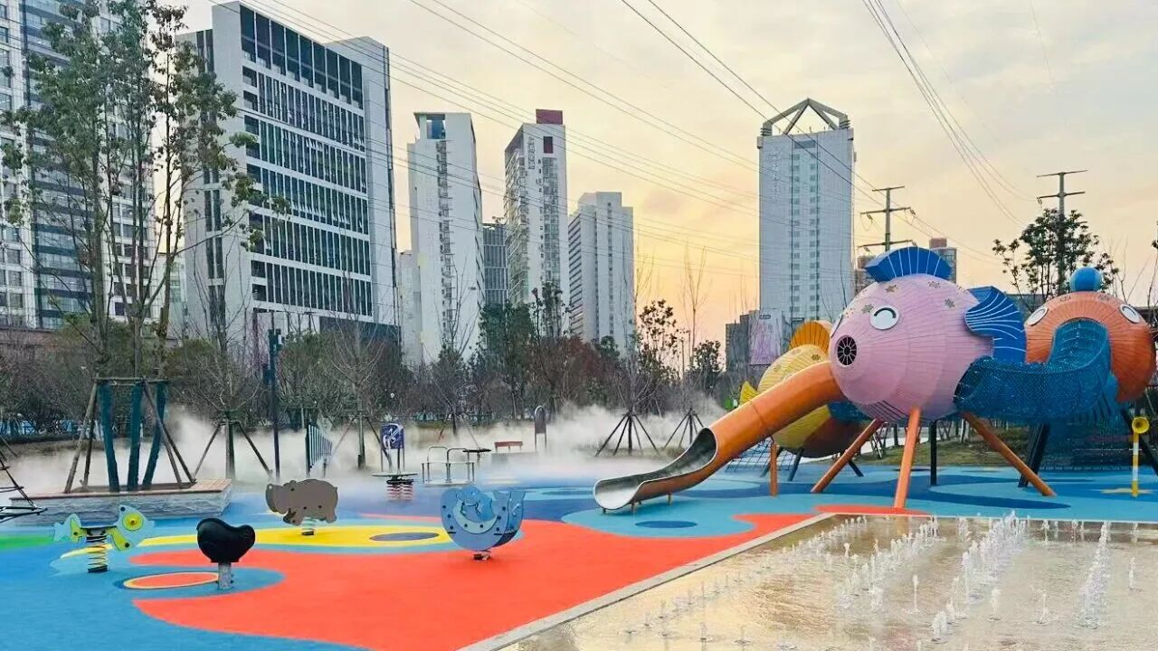 亲子游玩项目包含喷泉单车、泡泡森林、智慧足球等智慧化设施内容,打造了沉浸式儿童友好空间,让孩子们在玩乐中感受城市的温度。