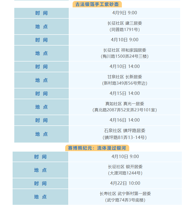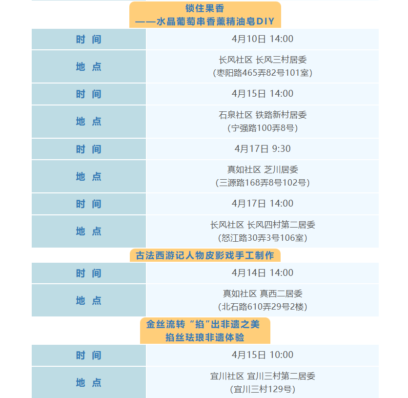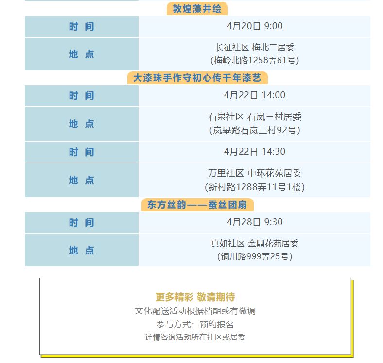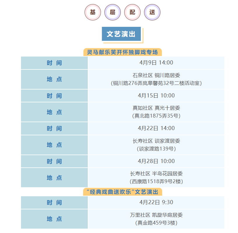 普陀区4月文化配送活动(基层配送)预告来啦!
