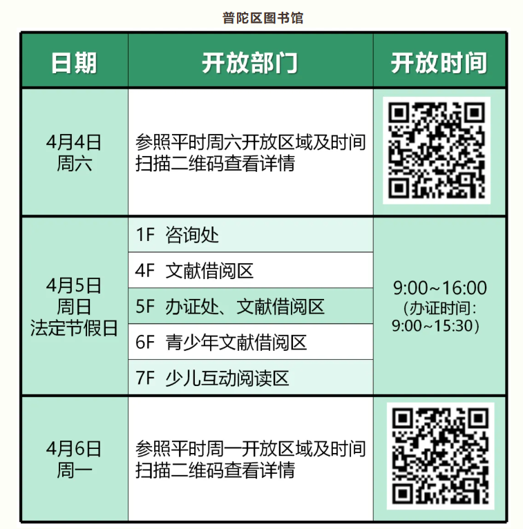 普陀区公共文化场馆2026年清明假期安排来啦! 2026年04月03日