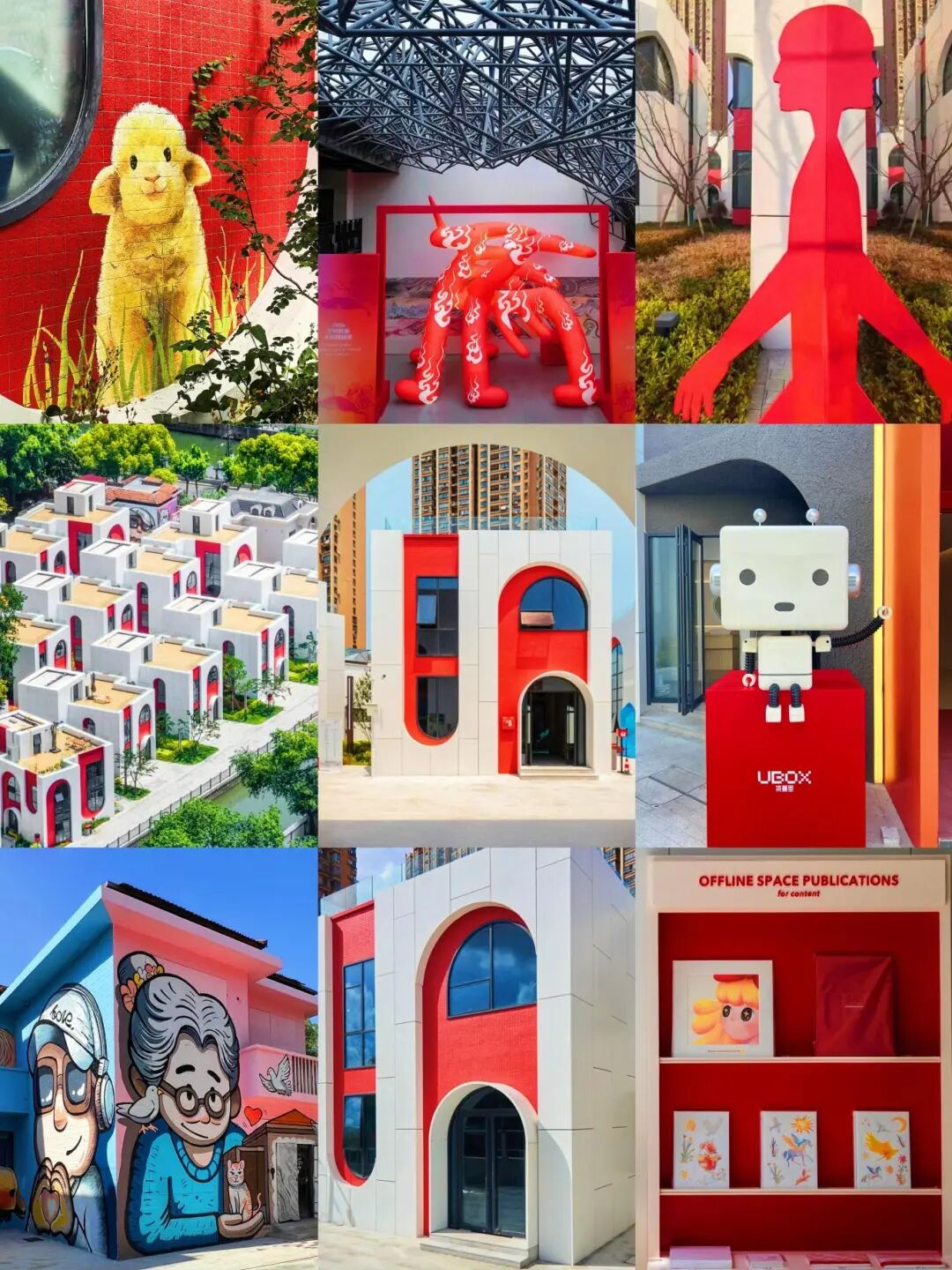 这份红色的鲜活,也藏在桃蔓里的日常景致中。作为上海首个“盲盒主题”创意艺术社区,红白相间的建筑宛如待拆的惊喜盲盒,红墙、红涂鸦、红标识错落其间,与街头转角的艺术装置、绿叶间的斑驳光影相融,处处皆是治愈瞬间。来这里赴一场Color Walk,喝杯咖啡、看场展览,在艺术熏陶中不负春光,让生活在春日里慢慢苏醒。