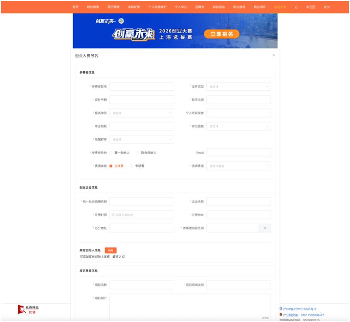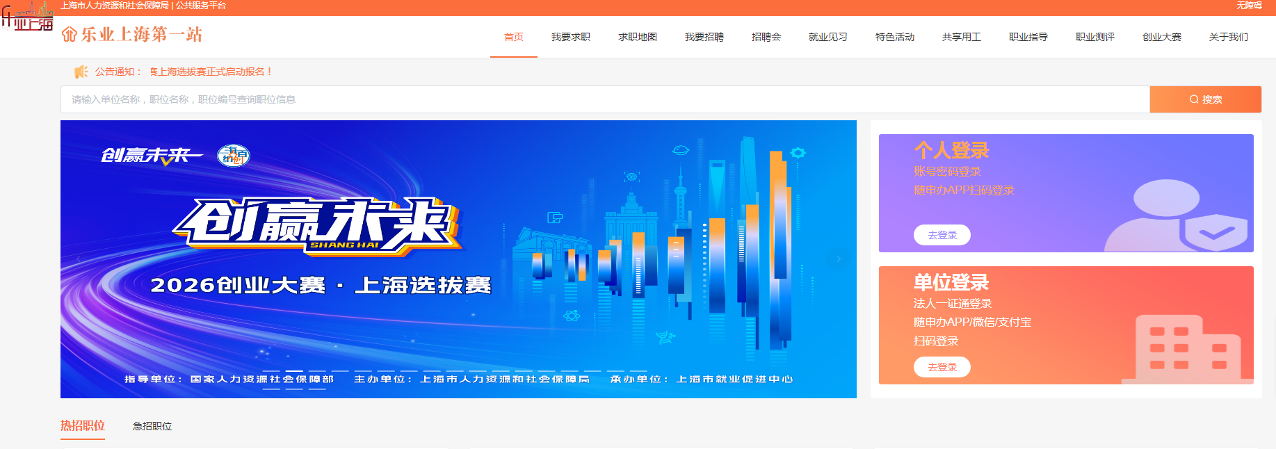 1、首先通过PC端打开报名网站:https://jobs.rsj.sh.gov.cn/ggzp-shrs/index.html#/startupComp