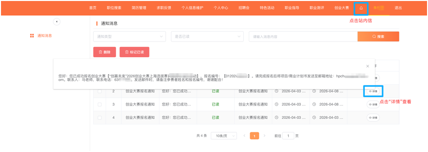 报名成功后,系统站内信会提醒联系电话与指定邮箱地址,请及时查看站内信,务必将商业/项目计划书PPT发送至指定邮箱地址。