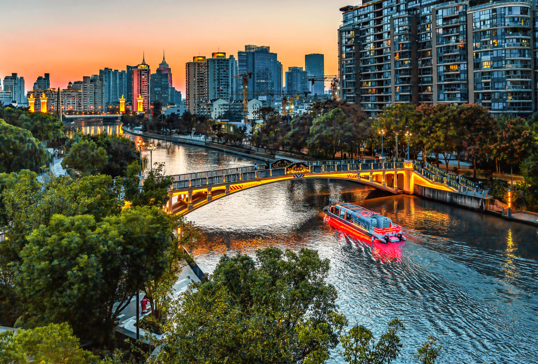 途经天安千树、M50 创意园、梦清园、百年老桥群,看古今建筑交织、工业文脉与都市新景交融,水上视角独揽苏河绝美风光。