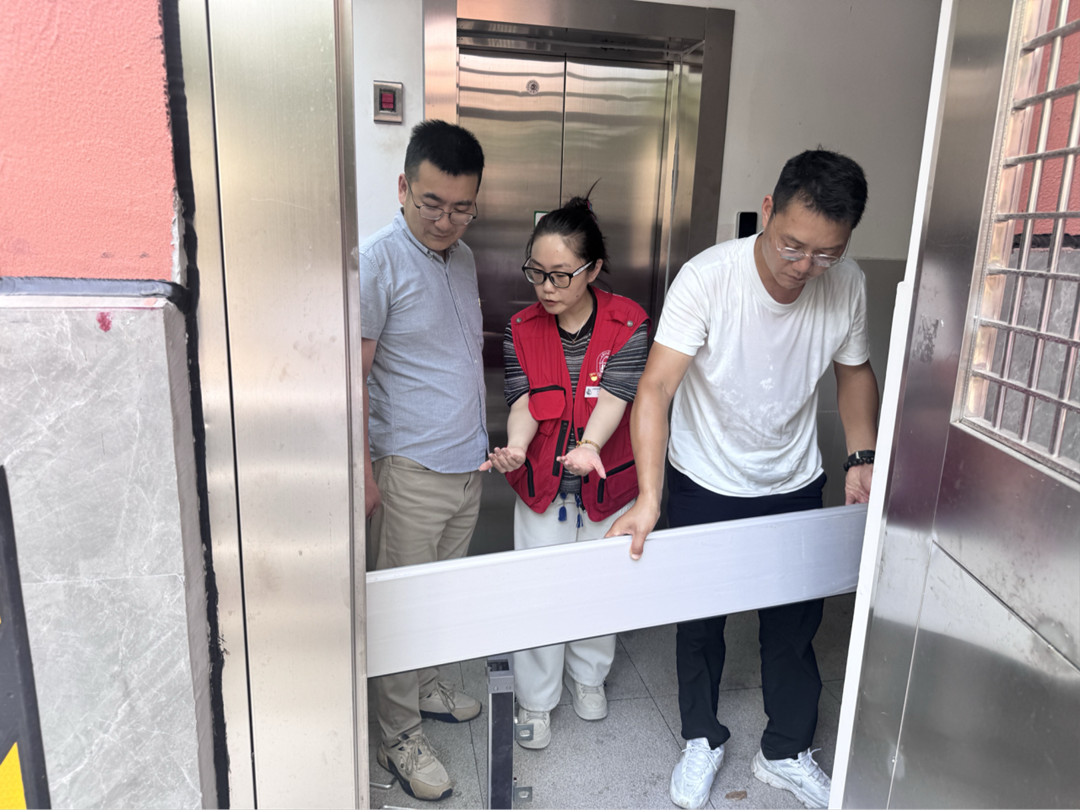 这话,被来“四百”走访的社工左玮听进了心里。她蹲在电梯口,看着墙角未干的水痕,望着居民们紧锁的眉头,当天就把情况汇报给了党总支。“这可不是小事,”长风四村第一居民区党总支书记当即拍板,“居民们盼电梯盼了这么久,不能让一场雨浇灭了盼头。防台防汛,得给电梯加上‘金钟罩’!”