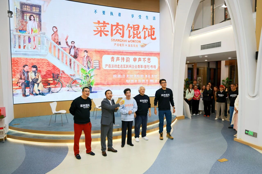 随着电影《菜肉馄饨》预告片的播放,大屏幕上熟悉的上海地标,瞬间唤起了在场青年的城市记忆。活动借力电影《菜肉馄饨》热映契机,以青年需求为锚点,创新融合党建与团建资源,将海派文化的温度精准送达楼宇青年群体。