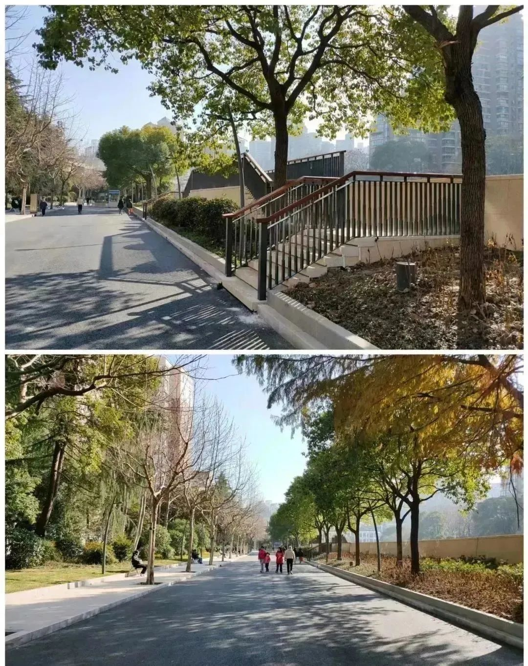 拓宽园路步道,沿边增加三角枫和春季开花植物