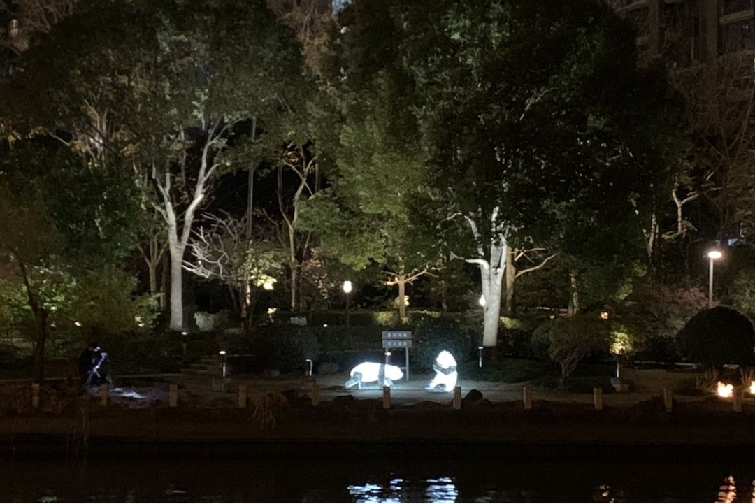 来到对岸,便是泰欣嘉园——宝成桥区段,本段不仅提亮绿化空间,还进一步利用场地空间和植物特征,打造“萤火飞舞”“星空探索”等主题灯光体验。同时通过石头灯、小动物灯等仿生造型灯具,提升岸线夜色活力和自然力,为苏河夜游赋能,提升居民生活幸福感。
