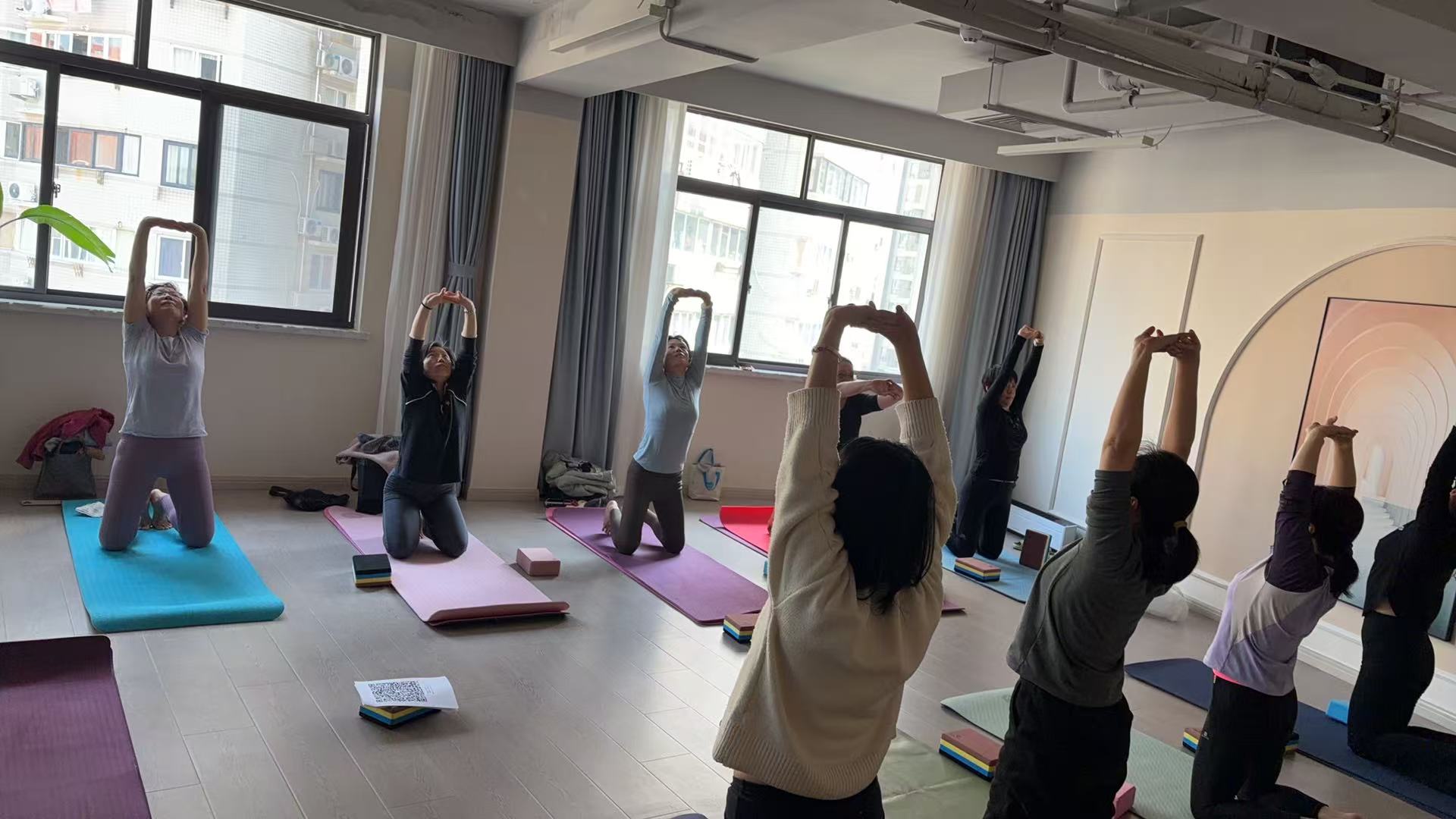 瑜伽教室内,大家在呼吸吐纳间舒展身心,缓解日常疲劳,雕琢身心;运动房中,武式太极拳刚柔并蓄,大红拳养生功动作张弛有度;木兰活动操、木兰双圈融合传统武术与健身理念,动作轻盈优美。