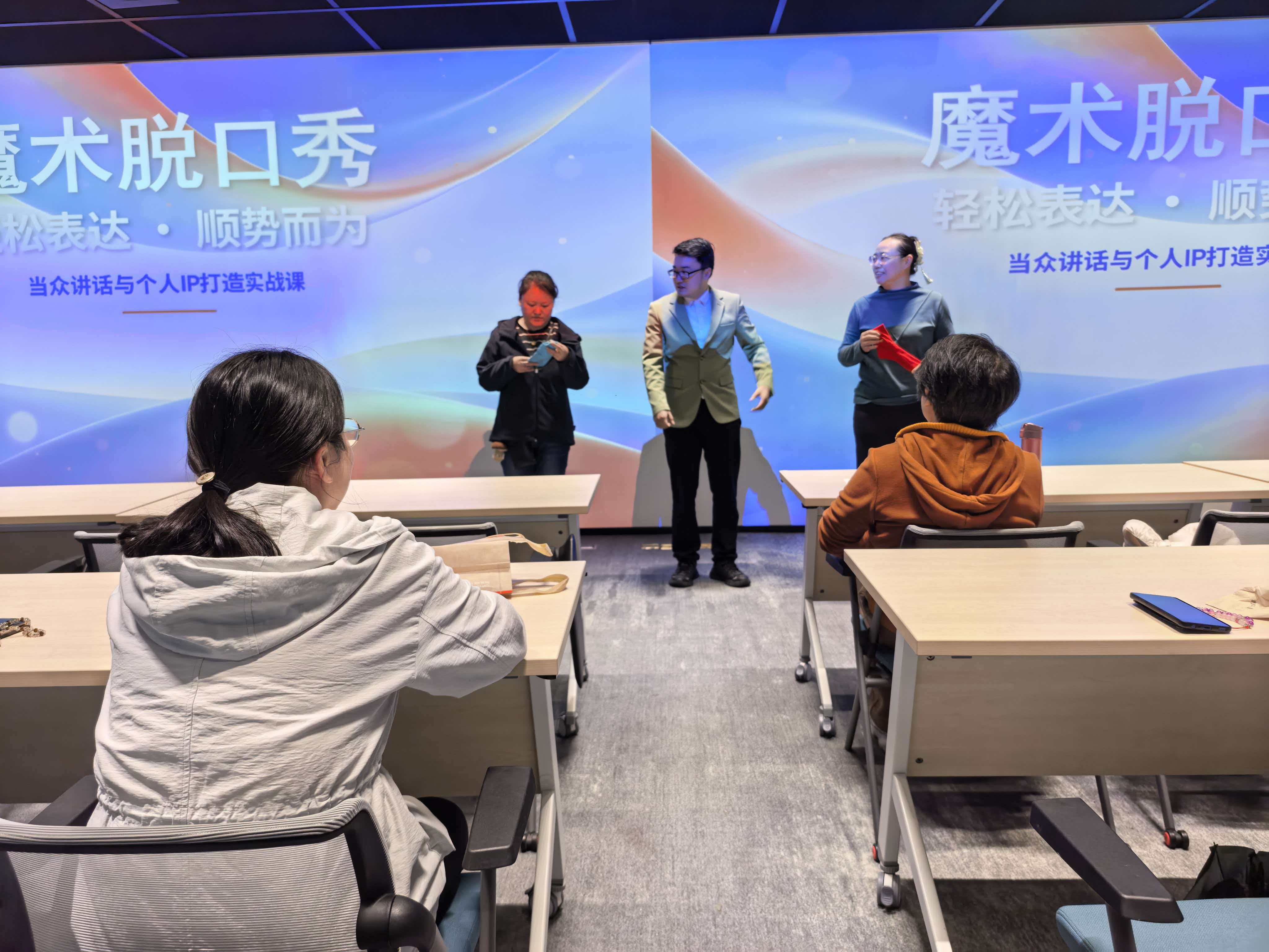 作为系列活动的压轴亮点,“书香遇魔术·悦读悦心动”主题专场在鸿寿坊楼宇党群服务中心惊艳登场。活动打破传统读书会的模式,创新采用“魔术脱口秀+表达力工作坊”的跨界形式。特邀知名魔术脱口秀演员、沟通表达导师景航,巧妙地将其王牌课程“轻松表达·顺势而为”的核心技巧,融入到近景魔术、卡牌预言等一个个神奇而有趣的互动表演中。