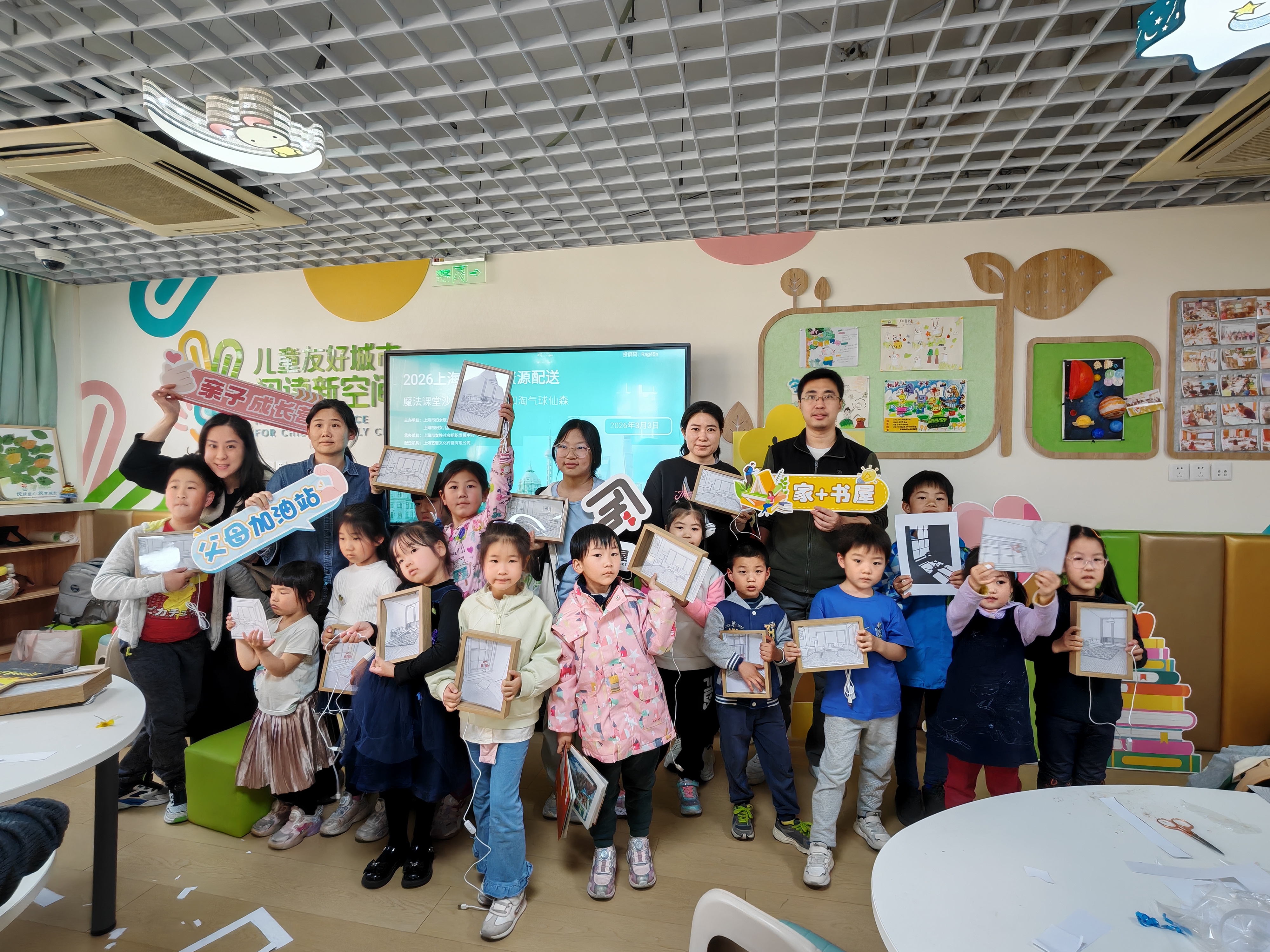 随后的手作环节,有的亲子家庭发挥创意,将一朵朵风干的春日花卉精心布置,封存于透明书签之中,把瞬间的美好变为永恒的纪念;有的家庭制作专属光影艺术品,将阅读中获得的温暖意象,转化为可触摸、可点亮的光影小屋。
