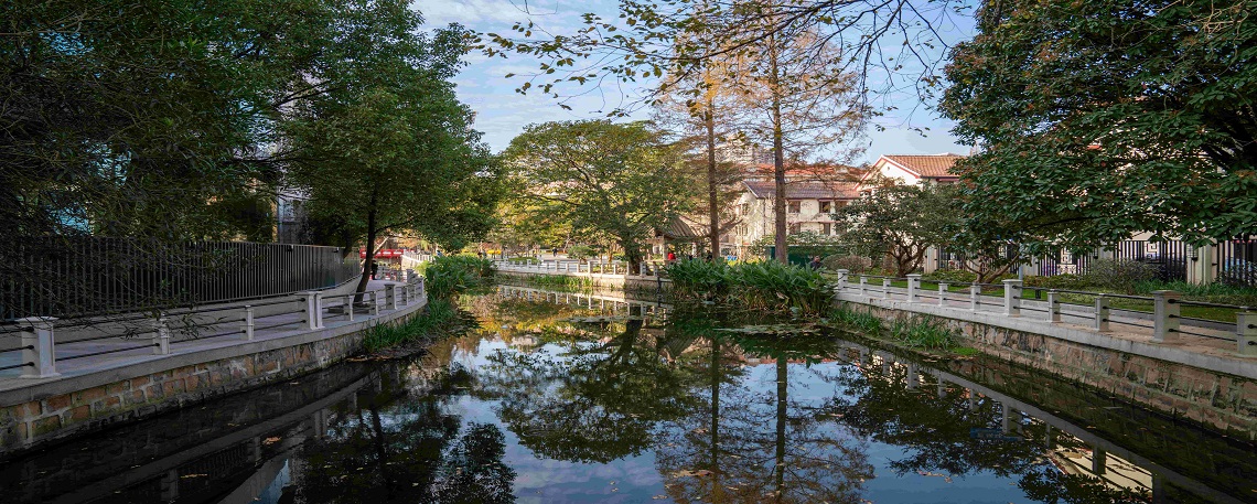 曹杨环浜是曹杨社区内一条环状生活型河道,全长约2.14公里,是居民日常休息游憩的场所,也是社区内最重要的蓝绿空间。