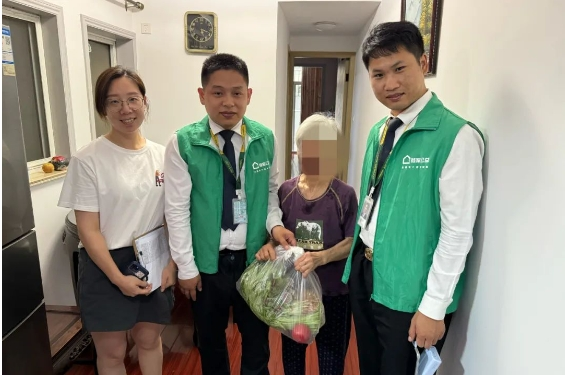当日清晨,南梅园居委会的工作人员与链家党支部的党员们便忙碌起来,精心挑选并打包好一包包新鲜蔬菜,准备将这些满载爱心的礼物送到独居老人的手中。