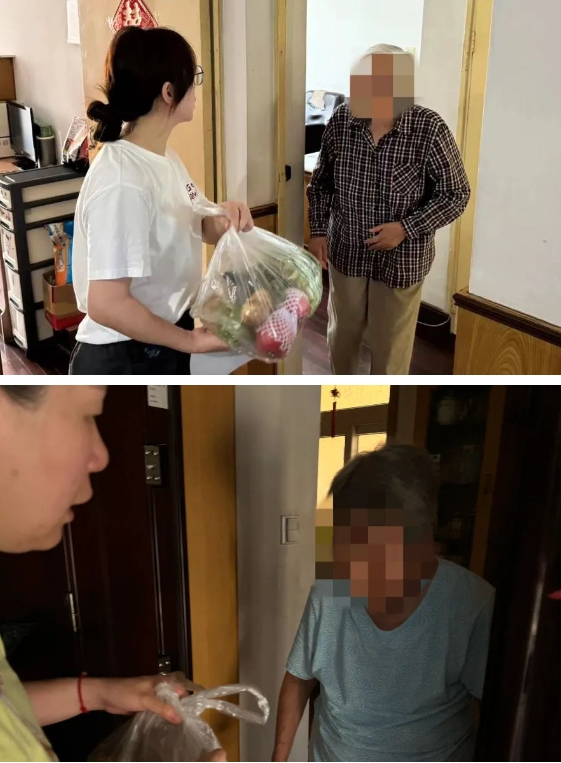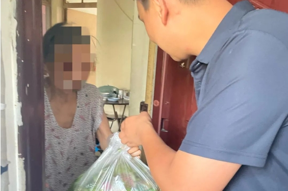 每到一户独居老人家中,工作人员都热情地送上蔬菜,并细心询问老人的身体状况,了解他们的日常需求。同时,还不忘叮嘱老人注意防暑降温,保重身体。