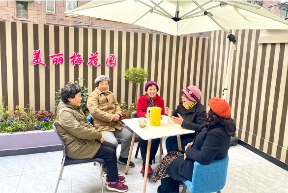 自2023年梅花园小区“乐享+”共享后花园项目启动以来,原本荒废的活动室天井焕然一新,成为了居民们茶余饭后的休闲乐园。