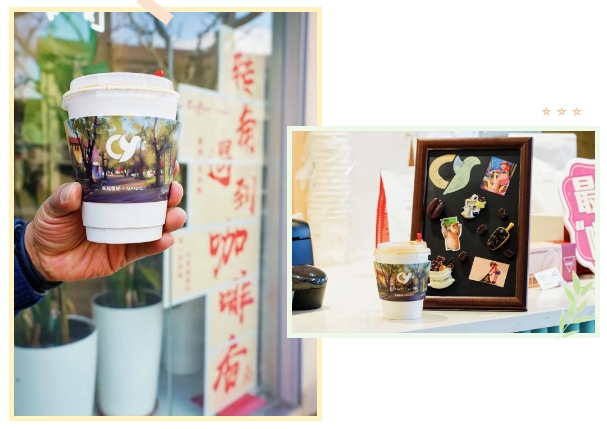 开业首日,这座“小而美”的咖啡品鉴空间特别定制了“幸福曹杨×MANNER”专属联名咖啡杯套。该杯套以“最美花溪路”为背景,以莫奈画风为主色调,配合暖心咖啡在冬日里传递温情。