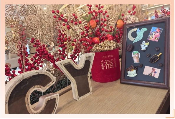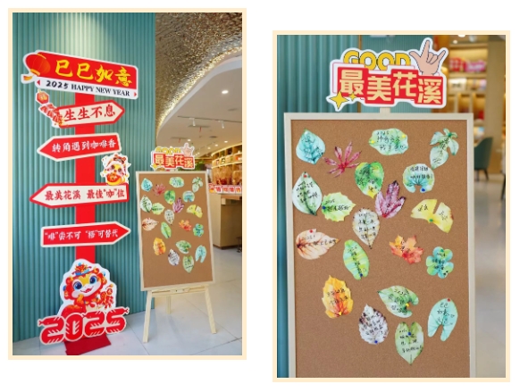 步入咖啡店,喜庆的新年装饰琳琅满目,处处洋溢着浓浓的节日氛围。暖色的灯光、舒适的座椅……整个店内弥漫着温馨惬意的气氛。
