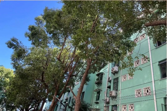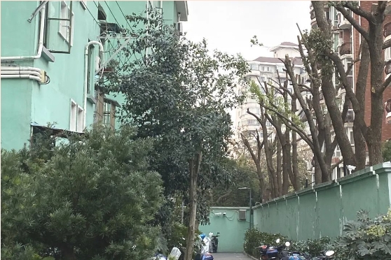 其中,杏梅园与桐柏公寓之间仅一墙之隔,相邻墙体边的树木生长茂盛,繁茂的枝叶不仅影响了杏梅园小区的采光,有些枝条还延伸到了居民的晾晒区,为日常晾晒带来了诸多不便。