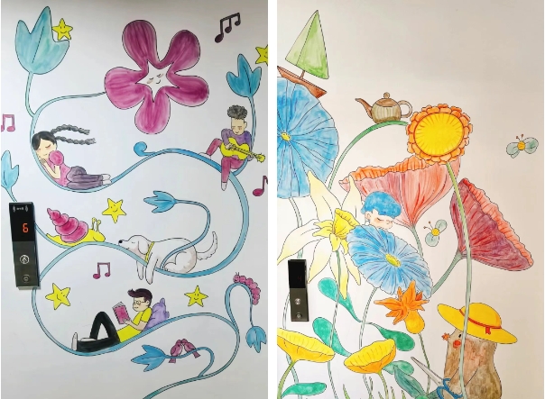 金梅园居民区“第二梯队”成员韩信是一名疗愈插画师。为推动楼道旧貌换新颜,他带领“彩绘小分队”连续三周深入楼道,用卷尺丈量每处墙面尺寸,用粉笔标记修复符号,精心构思每个细节,设计出了许多种方案供楼内居民选择。