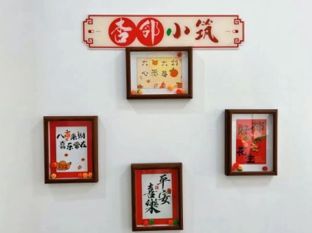 梅川路43弄15号楼的居民则将目光投向常被忽视的楼梯下方角落。大家在这一“方寸之地”悬挂寄托美好祝愿的装饰牌,俏皮标语与童趣图案、小摆件相映成趣,瞬间点亮角落,而此处也成为了传递祝福、分享美好的社区“微客厅”,让社区的温度与美感蕴藏在每一个微小细节之中。