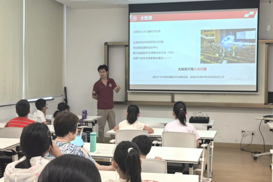 课堂上,上海交通大学能源互联网教育科普基地常务副主任梁老师从太阳系的基本结构讲起,带领大家了解太阳在太阳系中的核心地位以及八大行星的运行规律,随后还讲解了哈勃太空望远镜、等离子体的特性等相关科学知识。