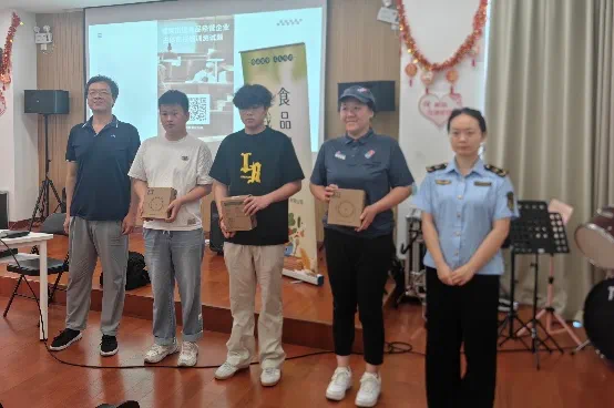现场测评结束后,曹杨市场所相关工作人员为测试考试前三名的餐饮商户代表颁发了奖品。此举不仅是对获奖商户学习成果的肯定和鼓励,也激发了其他商户对食品安全知识学习的积极性和主动性,营造“比学赶超”的良好氛围。