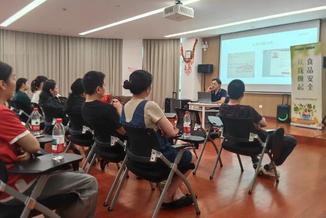 培训伊始,来自食安达的专业讲师围绕《中华人民共和国食品安全法》《食品生产经营企业落实食品安全主体责任监督管理规定》等相关法律法规展开详细解读。重点讲解了餐饮商户在食品采购、储存、加工、供餐等环节的法定责任和义务,明确了食品安全第一责任人的职责范畴,让商户们深刻认识到遵守食品安全法律法规的重要性,知晓违法违规行为将面临的法律后果,从思想上筑牢食品安全责任意识的根基。