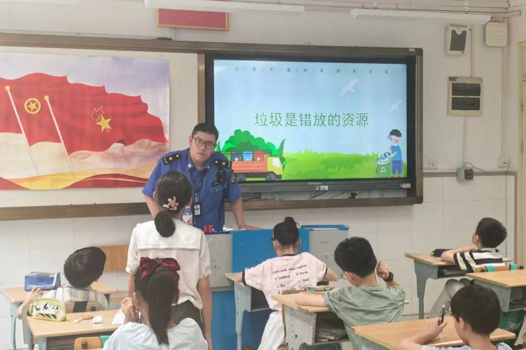 面向爱心暑托班的小学生们,执法队普法队员精心准备了通俗易懂的垃圾分类普法课程。结合生动有趣的PPT演示、互动问答以及有奖抢答等环节,激发孩子们的学习兴趣,帮助他们更好地掌握垃圾分类知识。