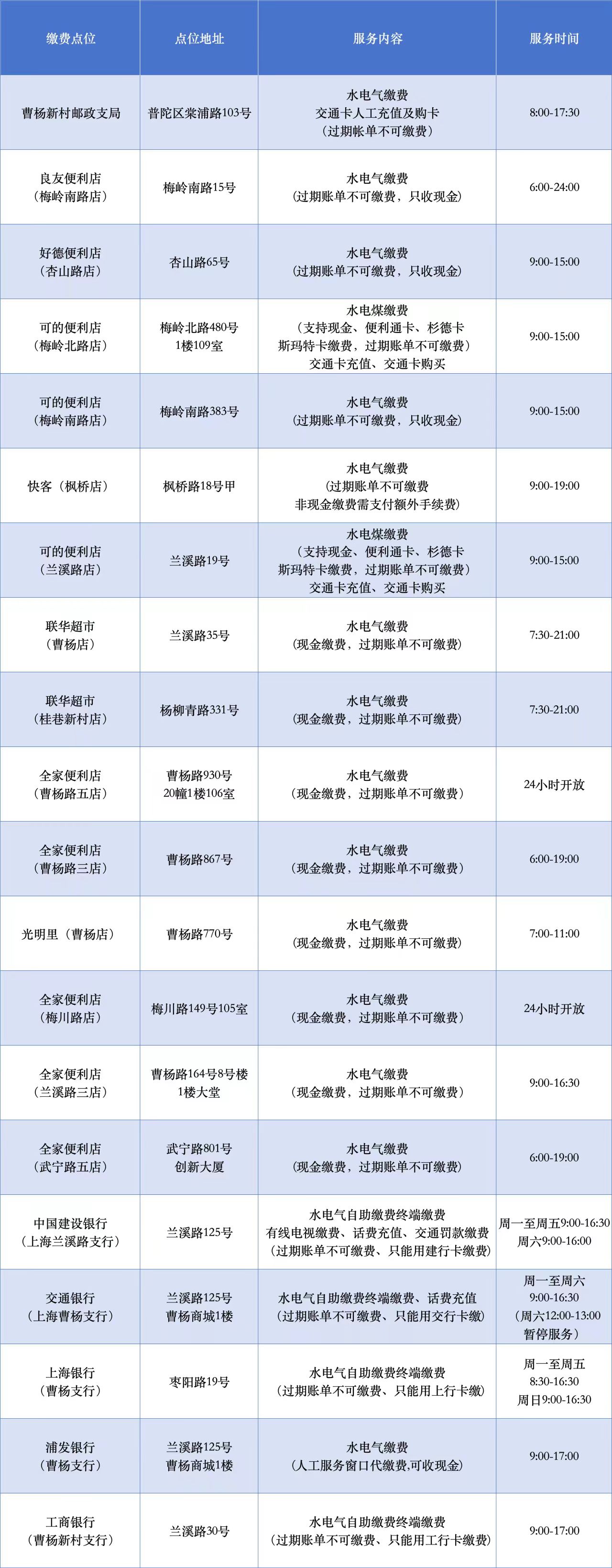 在“美好生活·掌中宝”智能应用平台的“掌上地图”板块新增“便民服务地图(公共事业费缴纳)”,曹杨居民足不出户即可一键查询水、电、气、通信等线下缴费点的地址、营业时间、服务范围等详细信息,让便民服务信息尽在“掌”握。