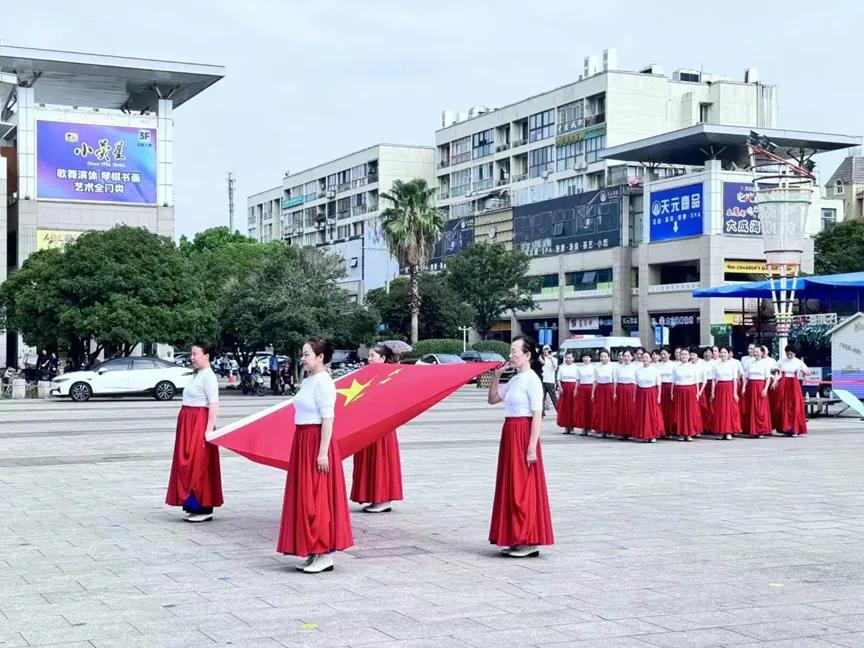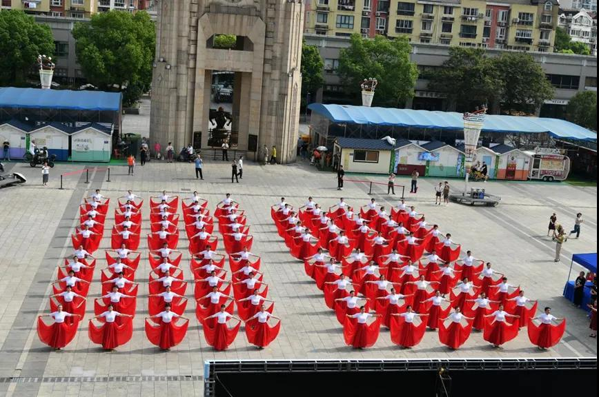 老年,是人生的金秋,是收获的季节,更是展现风采、享受生活的美好时光。伴着耳熟能详的《我和我的祖国》音乐响起,活动正式拉开序幕。百名老年舞者以“红飘带”起舞,弘扬优秀红色精神。律动感极强的广场舞紧随其后,涌入梅川路步行街祥和塔下,吸引了不少过往市民游客驻足观看。