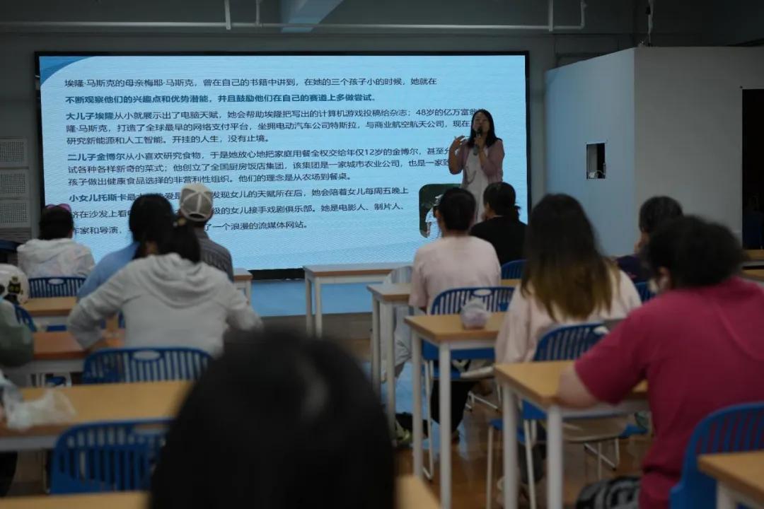 为了更具体地说明如何培养孩子的自我效能感(学习自信),讲师还以奥运冠军潘展乐家庭引导为例进行了介绍。作为一位在学业和兴趣方面均取得优异成绩的学生,潘展乐的成功经验为家长们提供了宝贵的参考。讲师鼓励家长们借鉴这些成功经验,结合自己孩子的实际情况,制定适合孩子的成长计划。