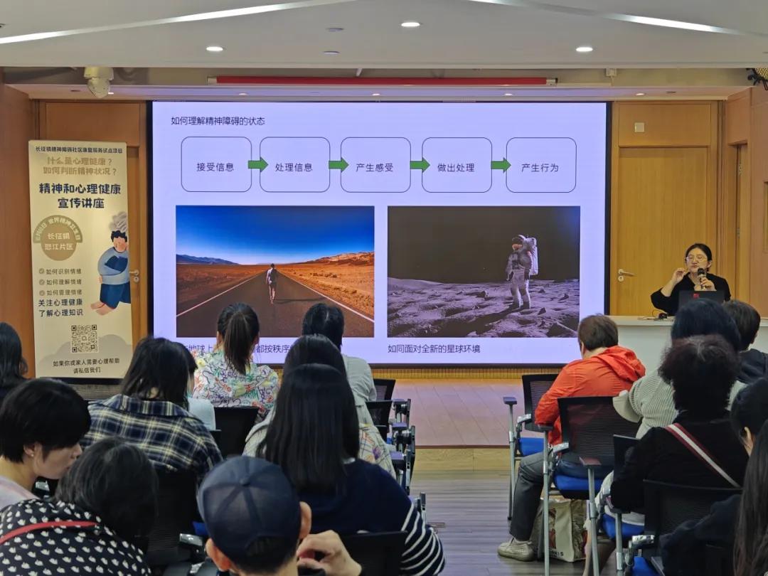 2024年10月14日 来源: 普陀长征10月10日是世界精神卫生日。这个金秋十月的特别日子里,长征镇社区事务受理服务中心、长征镇慈善工作站携手上海普陀区明尘社区发展中心,在怒江党群服务中心举办了一场以“金韵心语,健康启航”为主题的精神健康宣传讲座。这不仅标志着长征镇在精神障碍社区康复服务领域迈出了坚实的一步,更彰显了长征镇对居民精神健康福祉的深切关怀。