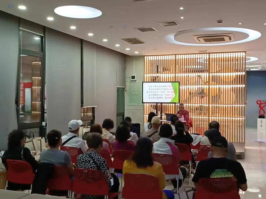 参观结束后,活动还邀请了上海市公共关系研究院副院长、市台办原处长张伟栋,为大家作“当前的台海形势和岛内政局”主题讲座。张伟栋老师从台海形势的严峻性、两岸关系的复杂性、祖国完全统一的必然性等方面,系统地为大家讲解了台湾当前政局与两岸关系。通过讲解,大家明确了新时代新形势下,党解决台湾问题的总体方略,相信祖国完全统一是一定可以实现的。
