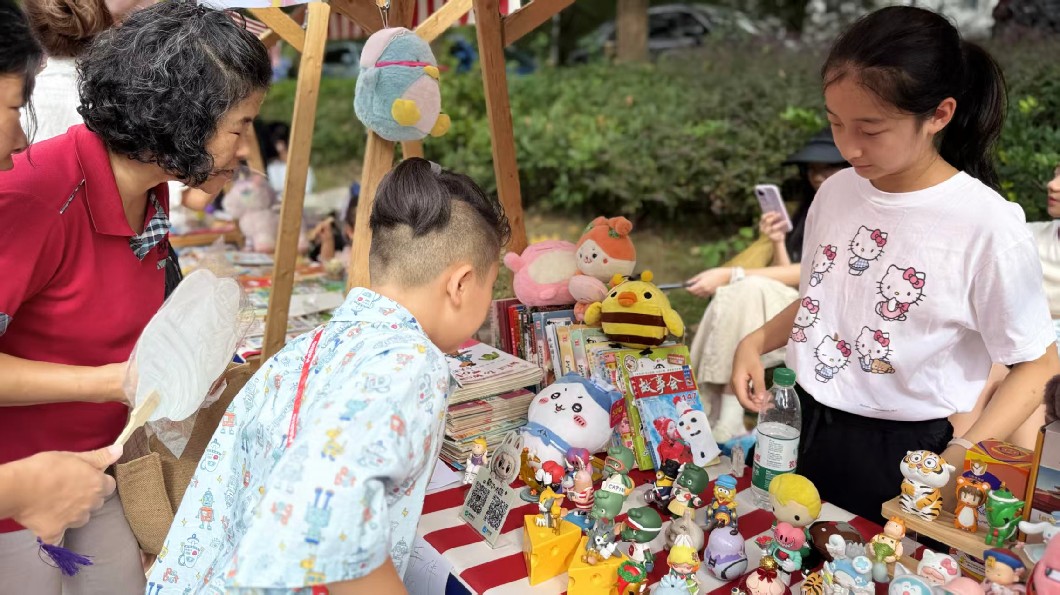 活动现场,由各楼组居民自发组织的二手交易区格外热闹。家家户户将闲置物品精心陈列,书籍、玩具、饰品等物品在邻里间流转续写价值。“这不仅是物品的循环利用,更是邻里情感的交流与传递。”社区居民李女士一边整理着摊位上的儿童绘本一边说道。孩子们在父母的鼓励下当起“小掌柜”,认真地向来往居民介绍自己的玩具;老人们则在集市过程中交流着生活心得。这些看似普通的交易场景,背后蕴含的是居民之间日益紧密的邻里关系,让闲置物品在流转中延续价值,让邻里情感在交流中持续升温。