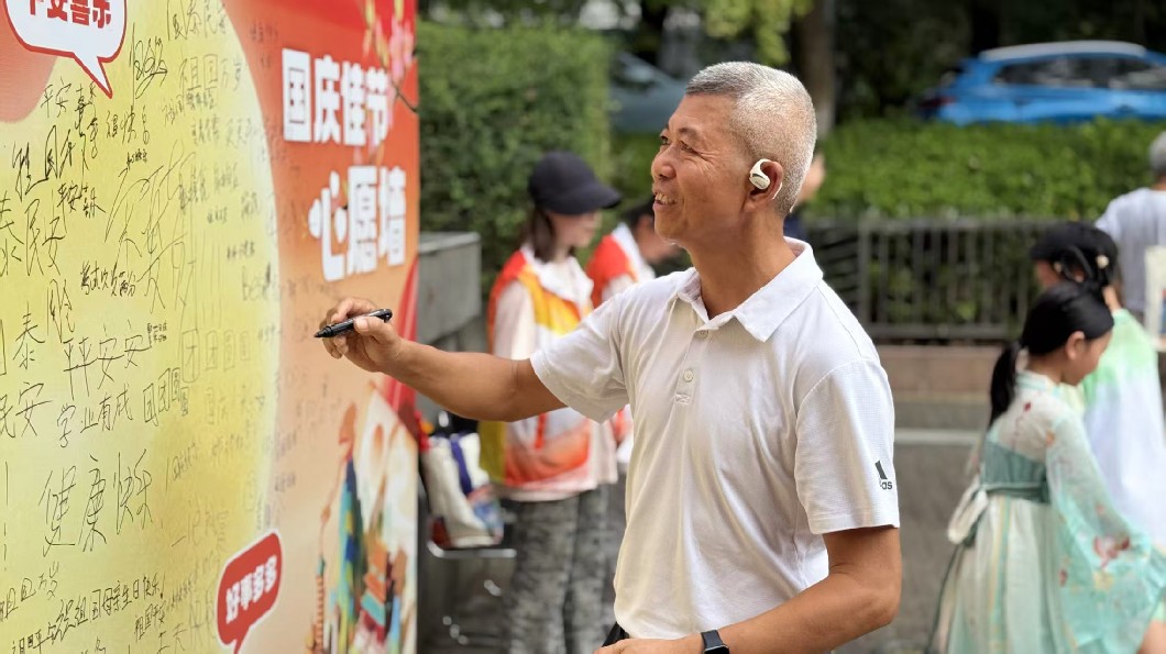 特别设置的国庆祝福祖国留言墙前,居民们排起长队,执笔写下对祖国的深情祝愿。“国泰民安”“邻里和睦”等祝福语渐渐铺满整面墙,承载着居民对家国团圆的美好期盼。与此同时,“滚动吧月饼”和“玉兔吃月饼”等融合中秋元素的游戏区域欢声不断,居民们在游戏中增进了解,在欢笑中建立情谊,爱邻日的理念在轻松愉快的氛围中深入人心。