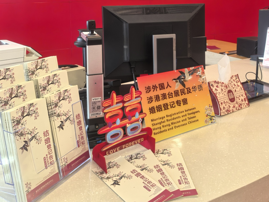 在市民政局的指导下,普陀区为涉外婚姻登记业务的启动做了全面细致的准备。通过全面培训,确保婚姻登记员提供专业、贴心的服务;通过设置中英双语指示牌,设计制作双语告知单、窗口提示立牌等环境的“微改造”,营造便捷温馨的登记氛围;通过开通涉外预约渠道,建立材料预审、专窗受理机制,高效响应每一对涉外新人的需求,帮助涉外新人顺利完成登记流程。