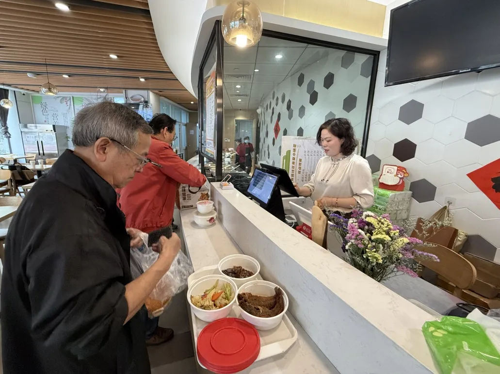 在收银台前,赵爷爷熟练地刷着敬老卡。“午餐加打包的晚餐,一天餐饮支出控制在60元内。”他还算起了一笔账:使用敬老卡享受区级餐补叠加商家优惠后,较市场价优惠近40%。更让他满意的是,食品安全有十足的保障,市场监管部门每月开展2—3次的飞行检查,让老人吃的更放心安心。