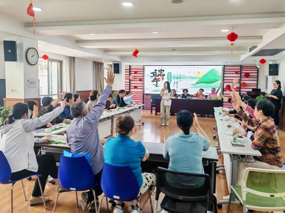 现场,端午知识抢答环节率先点燃了居民们的参与热情。主持人围绕端午节习俗、历史渊源等提出问题,“佩戴香囊的寓意是什么?”“‘五毒’指哪五种动物?”老人们踊跃举手,有的对答如流赢得阵阵掌声,有的在邻里提示下顺利完成答题。每位答对者都获得了寓意安康的端午小礼品,现场欢声笑语不断,老人们在轻松互动中深化了对传统文化的理解。