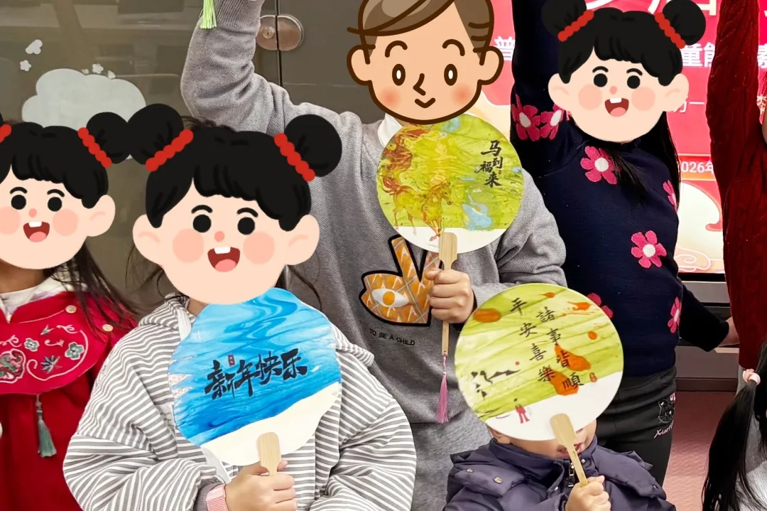 新年漆扇DIY让孩子们邂逅非遗飘漆的独特魅力,以指尖创意绘就元宵新年的美好。孩子们蘸取五彩颜料在素白扇面轻轻晕染,让颜料自然流淌,再勾勒出马年祥云、福字等吉祥纹样,朴素扇面变身独具特色的国风漆扇。每一把漆扇都凝聚着孩子的巧思,既是艺术审美与动手能力的成长见证,也让非遗之美在元宵佳节浸润童心。