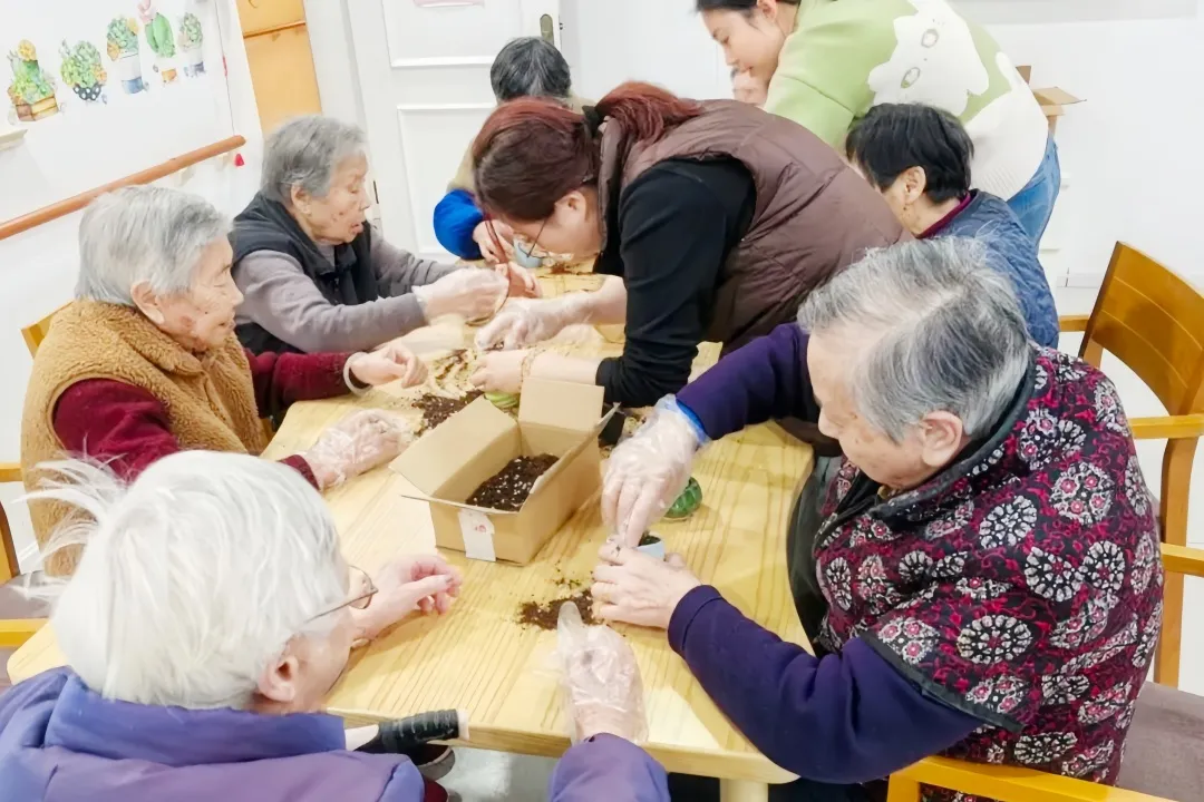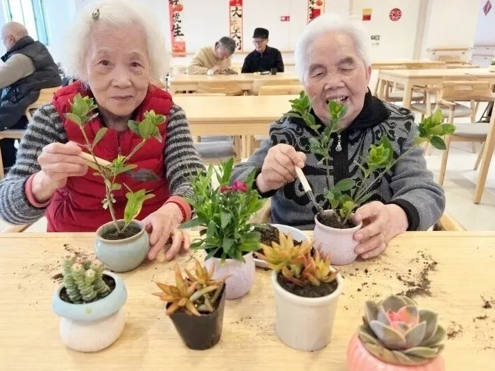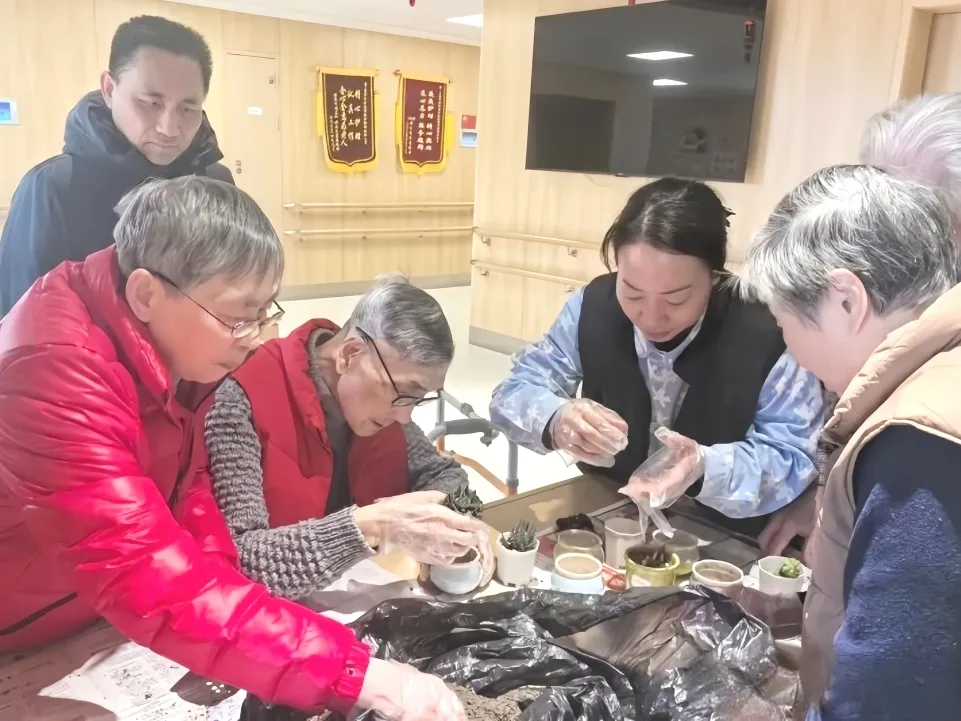 颐长敬老院精心组织了一场“指尖绿意,萌趣多肉”盆栽DIY活动,让老人们在方寸之间种下春日生机,收获指尖幸福。