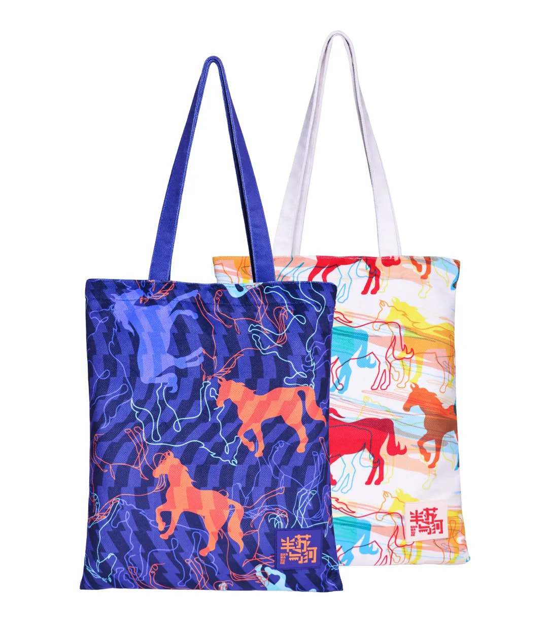 万马奔腾帆布袋,以“月白骏鸣”与“月影骑踪”两款设计,演绎昼夜交替间的城市脉动。图案中融入了苏州河水波纹的倒影元素,让骏马的奔腾与河流的蜿蜒在光影间交融,既呼应普陀区如骏马般昼夜不息的发展节奏,也暗合马拉松跑者坚定向前的精神写照。一座城的奋进、一湾水的灵动与个人的奔跑于一方帆布袋上呈现,传递奋斗不息的力量。
