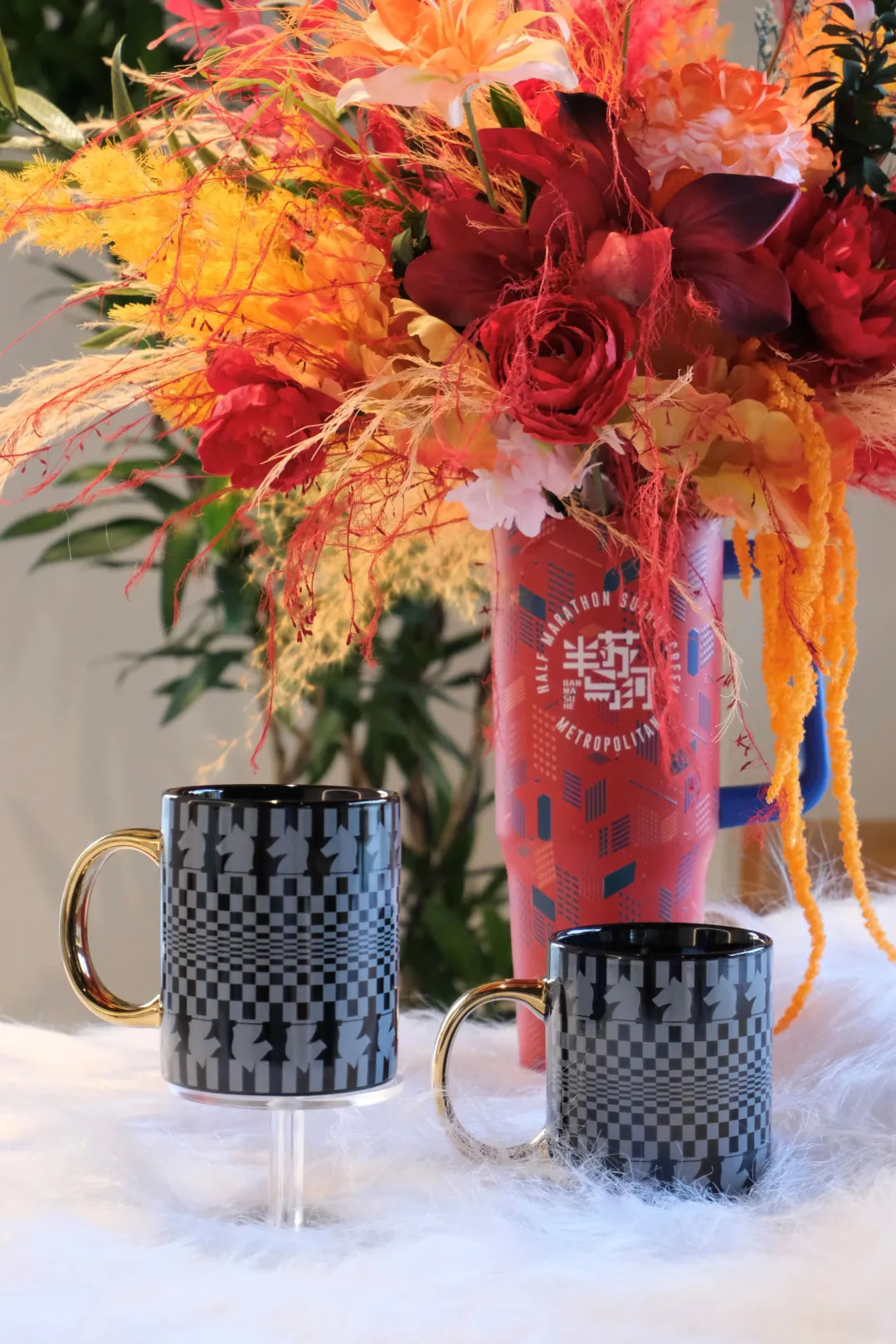 与之呼应的金色手柄马克杯,延续同一设计语言,杯身线条流畅,马首图案与几何格纹相映成趣。持杯如执棋,每一次斟酌皆是与自我的对话,诠释“手持温暖,心驭万象”的从容姿态。