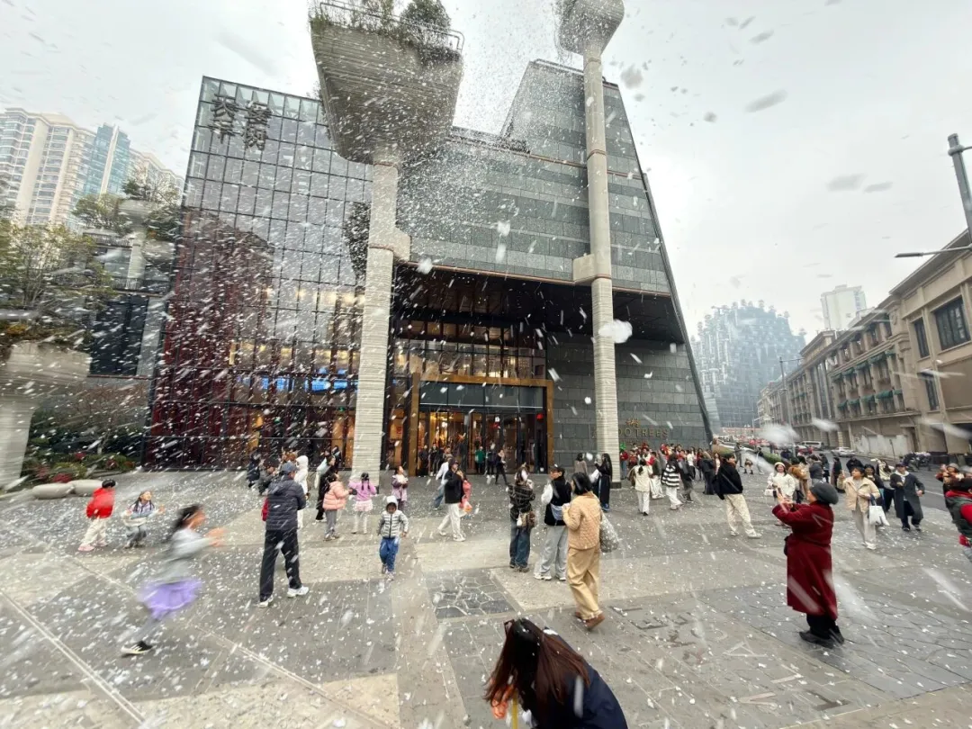 自2021年亮相以来,天安千树凭借其“城市森林”般的建筑形态,迅速成为海内外游客热衷的文旅打卡地。站在昌化路桥上,常可见成群国际游客在此驻足拍摄,其独特外观与苏州河景相映成趣。