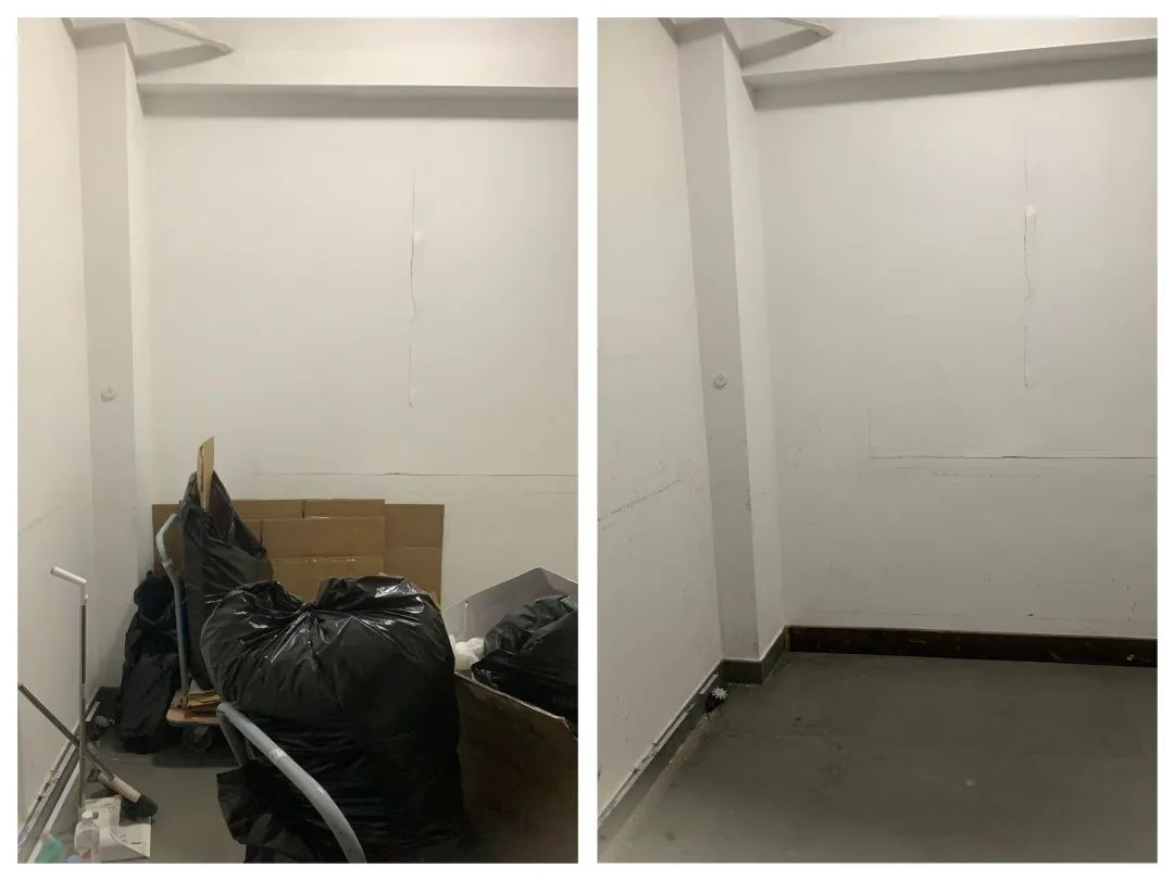 (应急通道堆物整改前后)