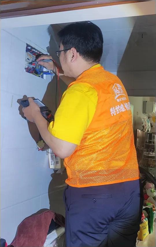 (9月23日,维修师傅正在乔先生家进行电路故障维修,受访者供图)