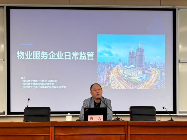上海市物业管理行业协会法律顾问、亚洲合规官协会副秘书长陈世福讲授课程“上海物业行业相关政策法规解读”。他围绕物业监管的“三级法规体系”,细致介绍了街镇工作人员履职的法规依据,为街镇工作人员指导监督业委会规范化运作、物业企业服务履约提供了有力支撑。